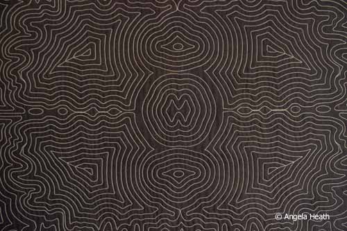Abstract surface design. Digitally printed heavy cotton twill. Long-arm quilted.