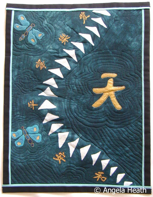 Hand dyed, hand painted cotton. Quilted. Love, happiness, tranquility, peace, serenity, harmony and good luck to ALL!