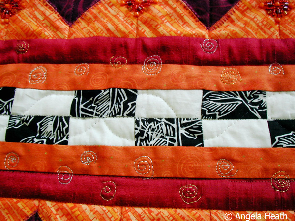 The Helix Tango was a quilt I completed in 2008. It was my first whole cloth piece that was inspired by my love of the tango. My vision for The Helix Tango is “life, love, and passion” – what the Tango dance embodies.