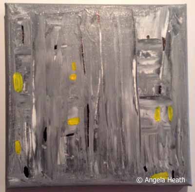 PAINTINGS_Metallic-Abstract-Gun-Metal-Grey_2016 Metallic Abstract: Gun Metal Grey Surface Design Series 8″ square Abstract design with grey background and yellow and white accents. 2016