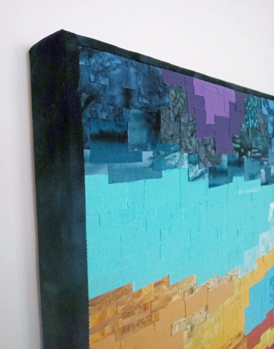 Abstract, hand-painted, stamped muslin with organza and silk.