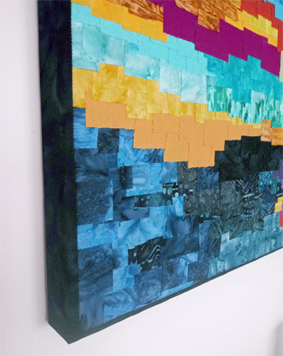 Abstract surface design. Design generated from stretching Sine waves in Photoshop. Quilted with cotton and metallic threads