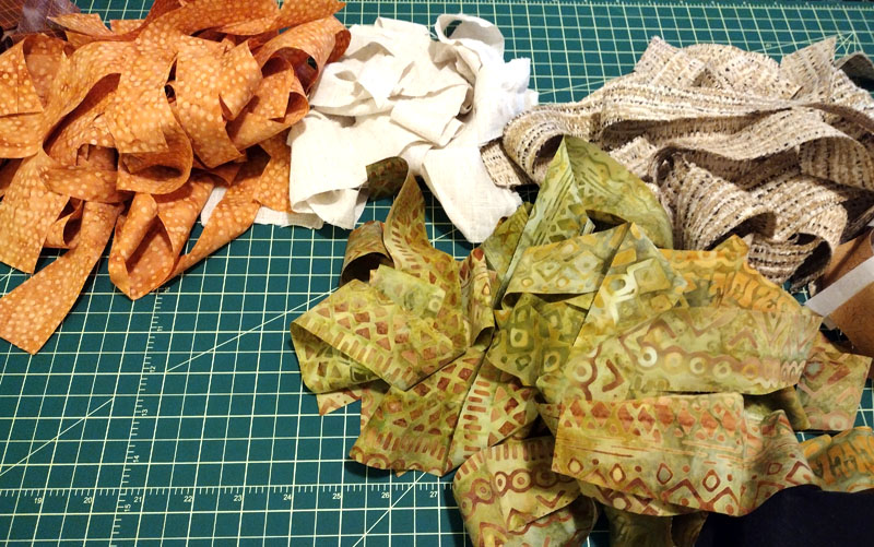 Earth Moving is my latest work from my Earth Series. It is 18″w by 24″h stretched around canvas. It contains the “Earth” fabrics along with silk ribbons.