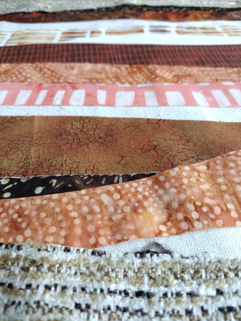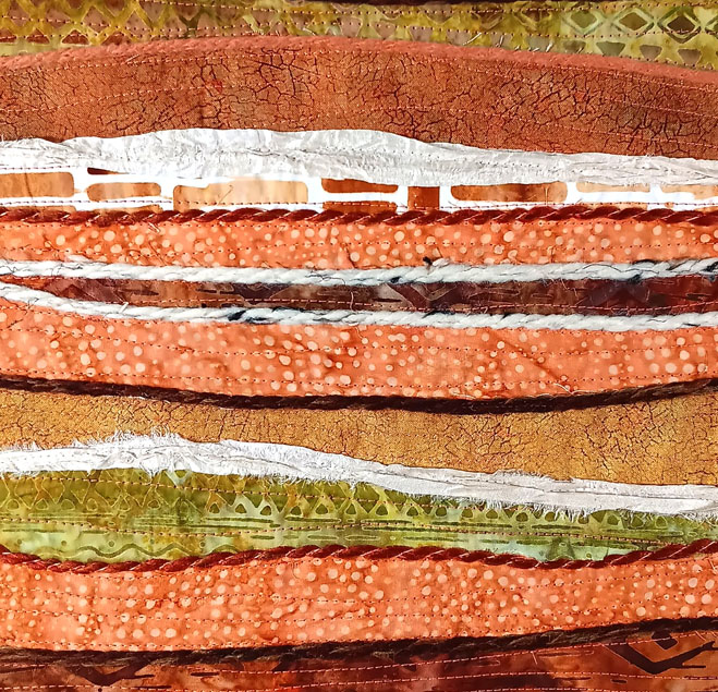 The Earth series explores the representation of the striations and rich layers found the Earth. The natural colorations and textures are infinitely abound. With Earth, I felt that pieces that used fabrics of different colors, weights, textures would be so exciting to explore.