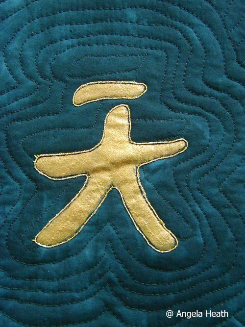 Hand dyed, hand painted cotton. Quilted. Love, happiness, tranquility, peace, serenity, harmony and good luck to ALL!