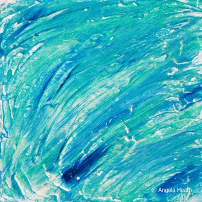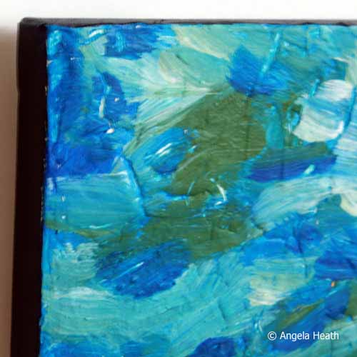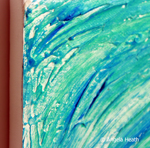 PAINTINGS_3D-Textures_At-the-Beach_2015 3D Textures (At the Beach) Texture Series 6″ square Abstract, textured design with aqua, blue and white brushstrokes. 2015 Side View: