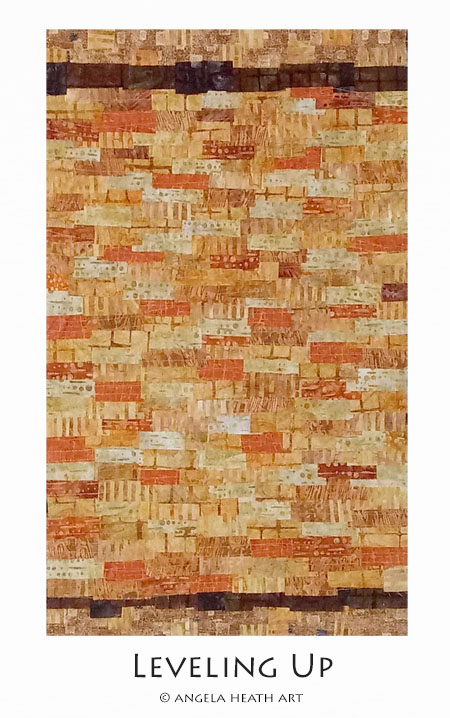 The 4th work in the Tales from the Innervision quilt series, Leveling Up represents the ascension in one’s personal life. Leveling up is the elevation to reach the next chapter, next stage, next phase, next plateau in one’s existence. This is a personal exercise for each human being and means something different to each one.