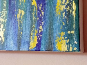 This quilt uses 27 different pieces of fabric – commercial cottons, raw silks, and my own digital fabric. Pieces are cut leaving raw edges and then carefully positioned on a whole piece of interfacing to form the mosaic top. The quilt sandwich is the mosaic top, organic acrylic felt and backing cotton fabric. The sandwich is sewn together using cotton thread and then binded with mitered corners.